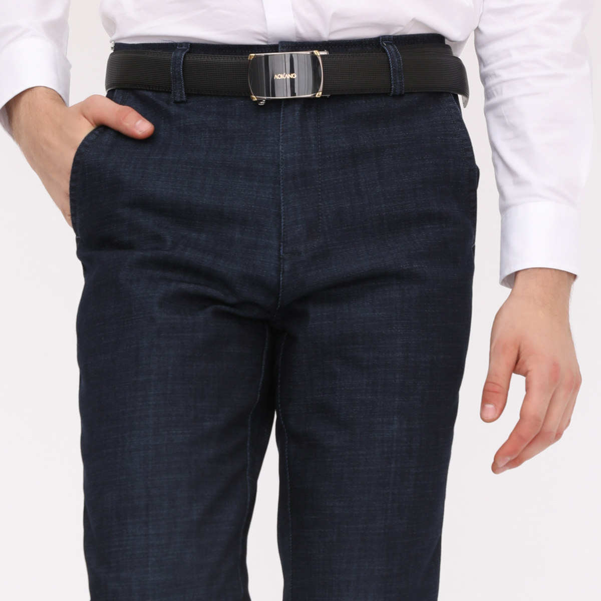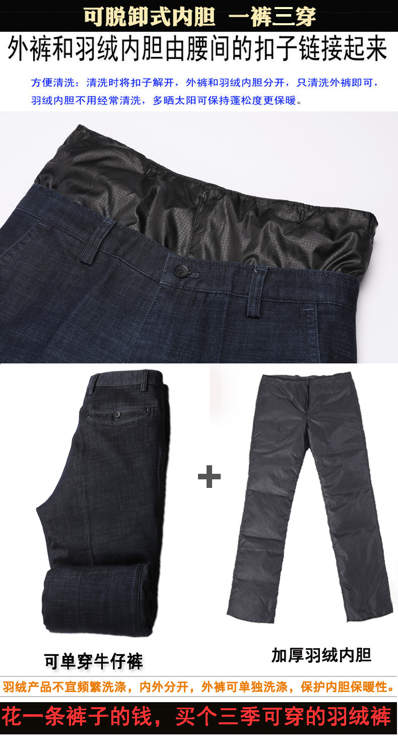 Men's Denim Down Pants Men's Outer Wear Youth Slim Removable Liner Middle-aged and Elderly High Waist Winter Warm Cotton Pants