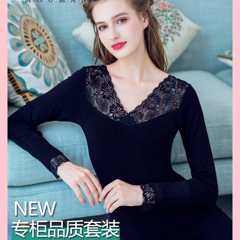 Lace Fever Clothing Women's Autumn Clothes Sanitary Pants Suit Beauty Body Thin and wearing a modell hit bottom cotton sweatshirt tight