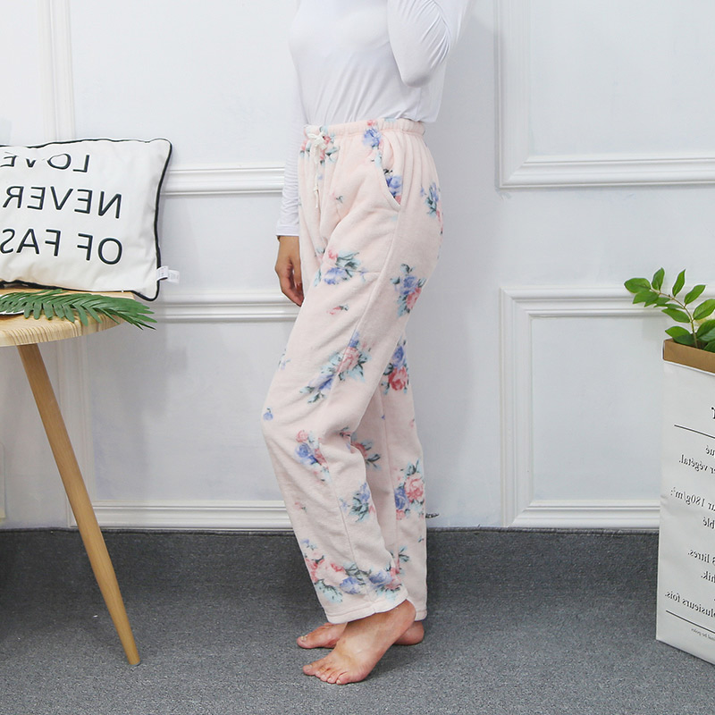 Flannel pajamas women's feet winter large size home coral velvet warm pants Men's velvet thickened pants wear outside
