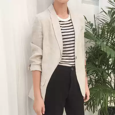 Tibetan linen blazer women's thin summer 2021 vintage Hong Kong flavor short Joker coat small suit tide