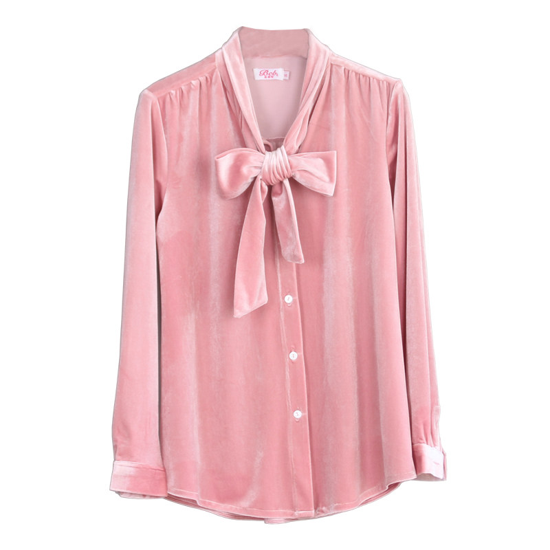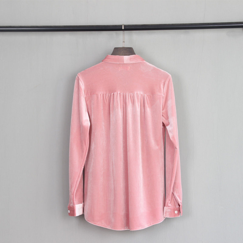Temperament gold velvet floating with loose long sleeves shirt woman 2022 spring autumn new big size to beat undershirt polo shirt