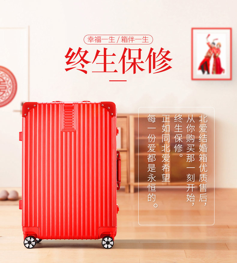 Red suitcase wedding suitcase bride dowry box trolley box wedding password box dowry pressure box 24 inches