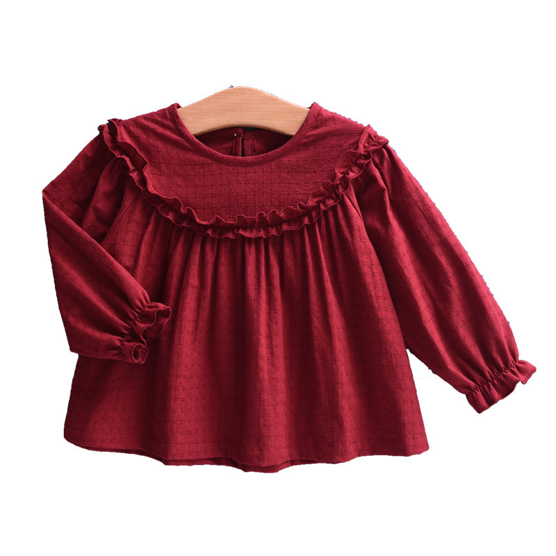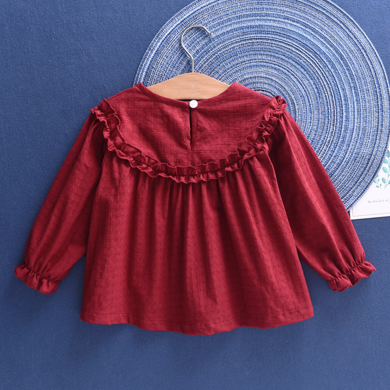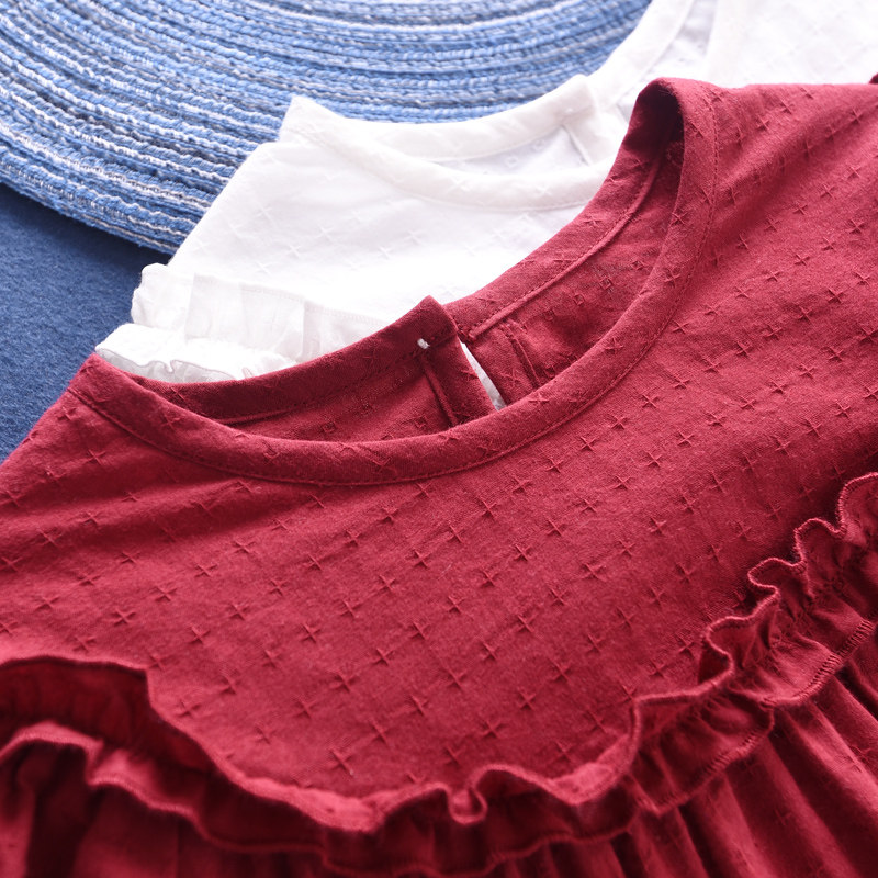 3#白色花边娃娃衫酒红白色荷叶领娃娃衫黑波点黄波点