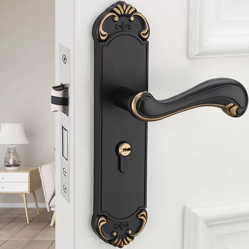Special price one-piece silent door lock indoor door lock black European simple solid wood bedroom lock handle