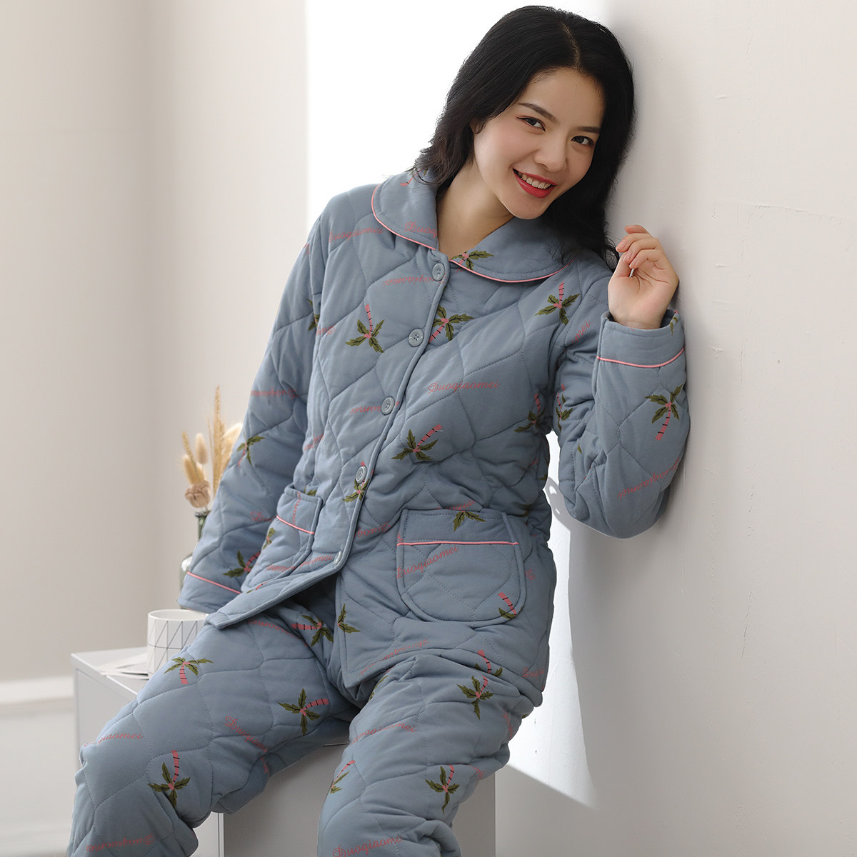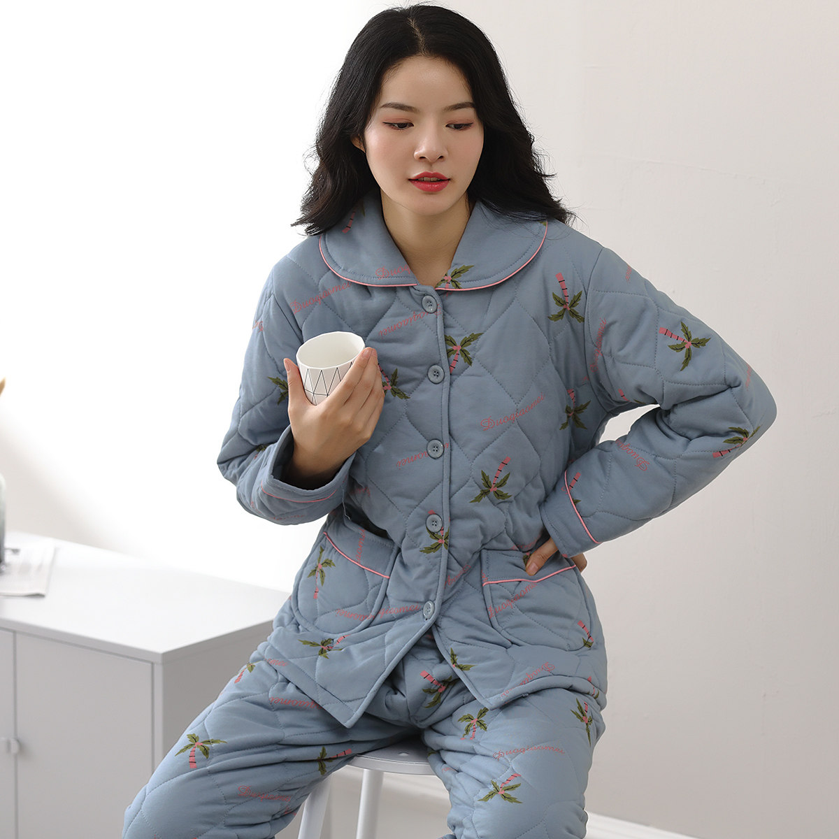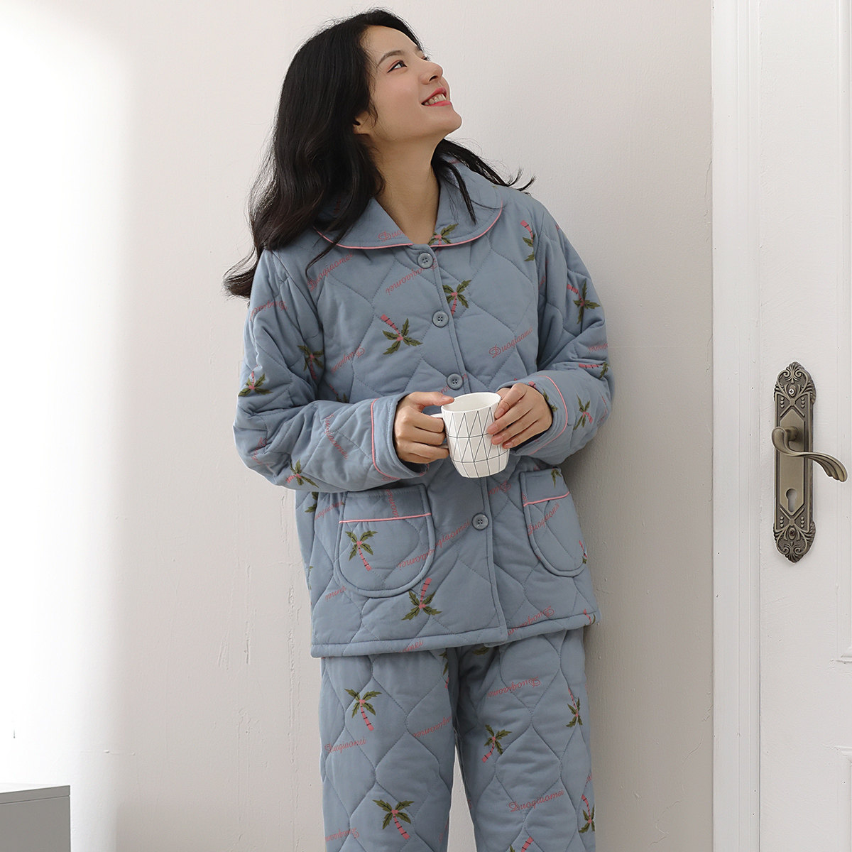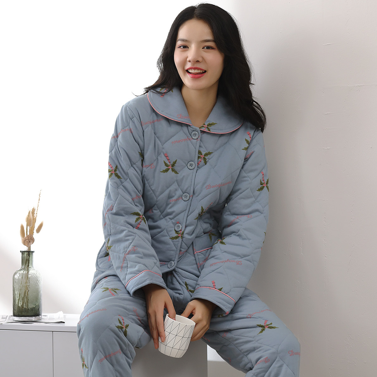 Multiplayful Beauty Autumn Winter Pure Cotton Pyjamas Woman 2022 New Clip Cotton Thickened Winter Home Clothing Suit Plus Cotton Padded Jacket