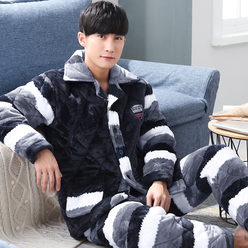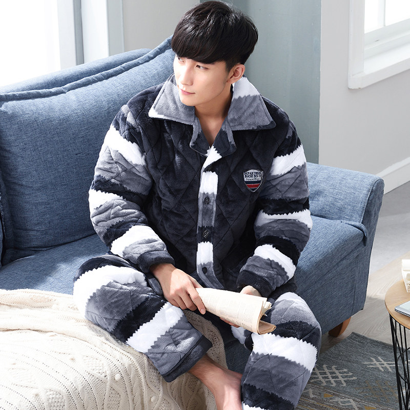 Men's triple layer clip cotton padded jacket winter warm pyjamas coral suede thickened and velvety flannel suede suit winter