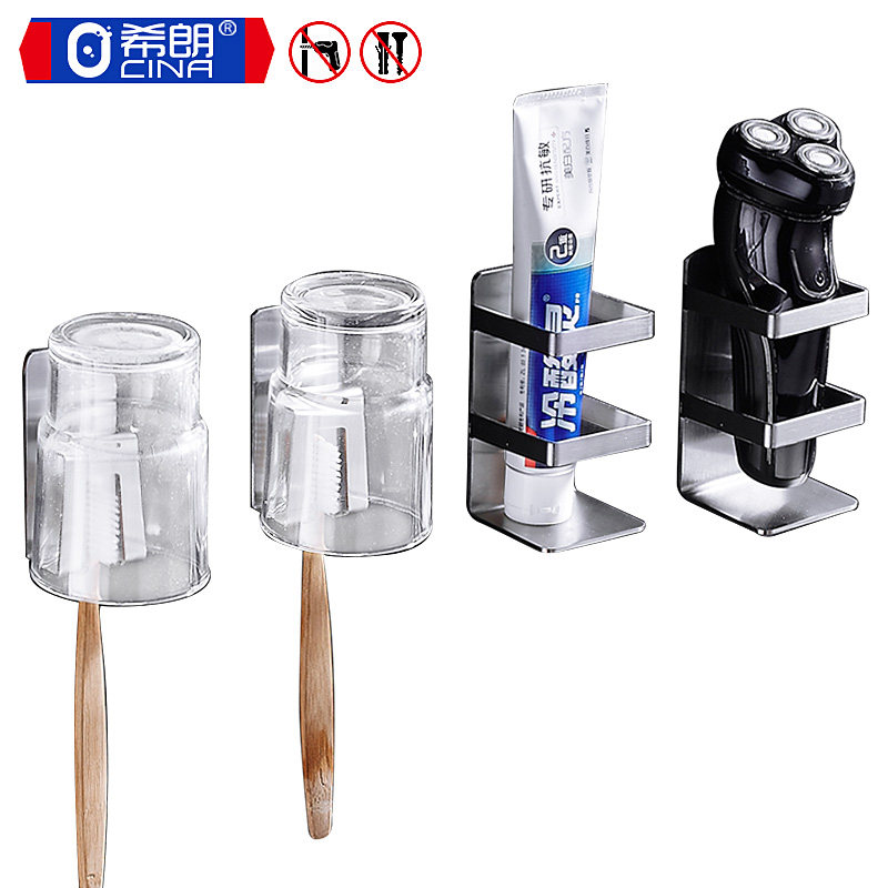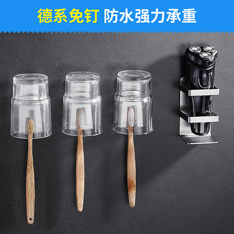 304 stainless steel toothpaste toothbrush shelf Powder room family of three free hole toothbrush holder brushing cup set