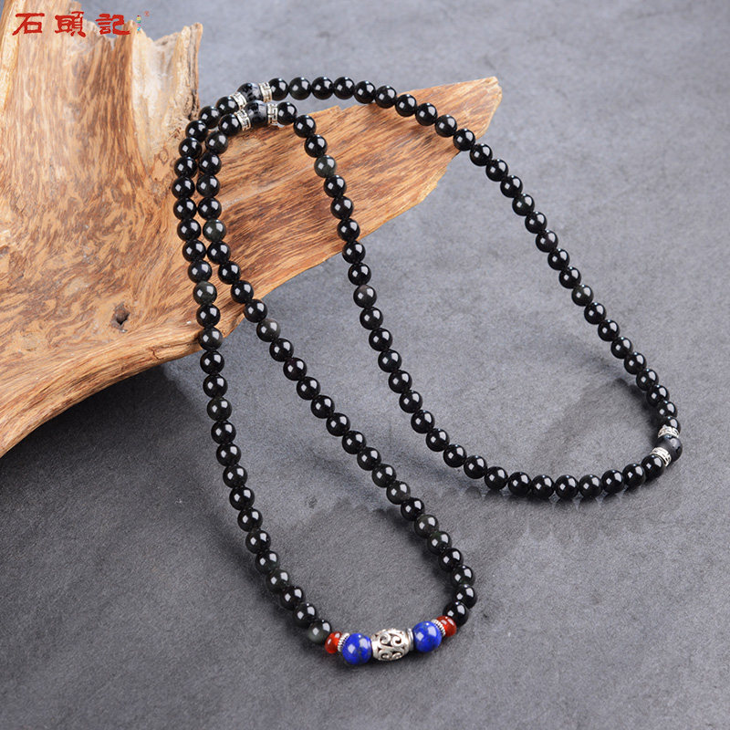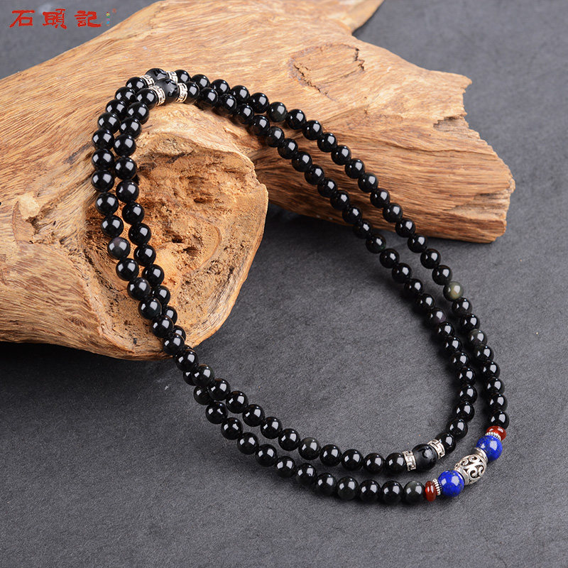 iSTONE stone head notes black dazzling gold stone red agate with multiple layers of natural hand alchemy beads for men and women