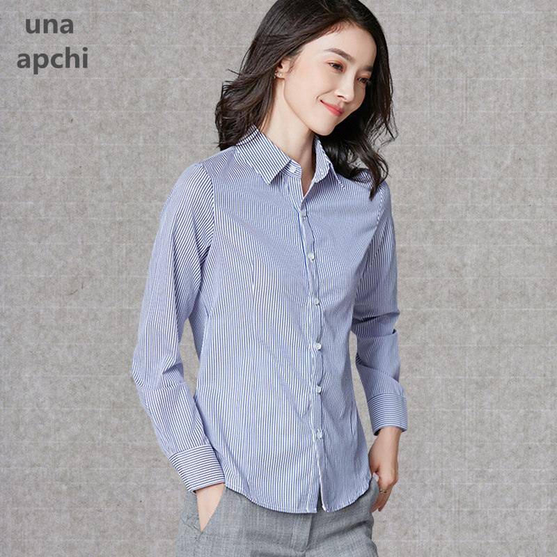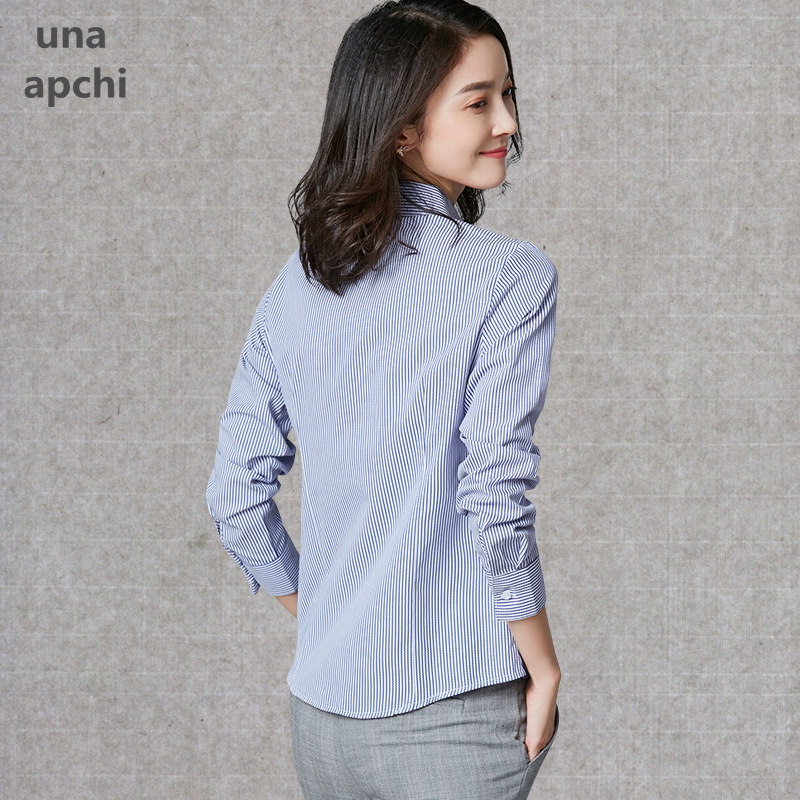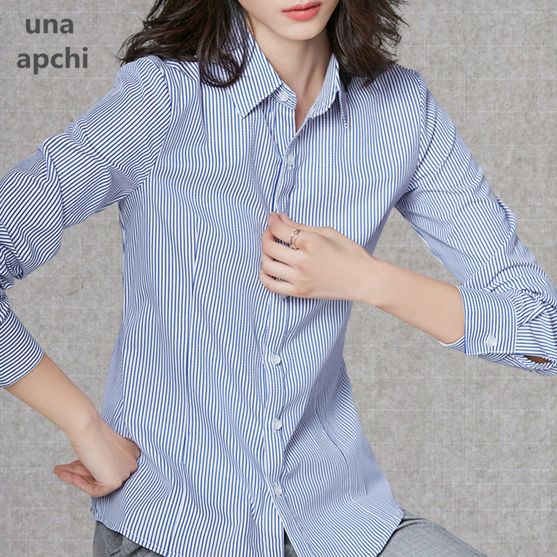 Career shirt female spring and autumn 2022 new Han - knit long - sleeved Polo collar blue striped working suit coat