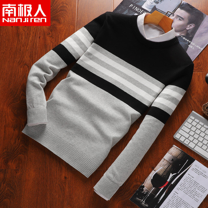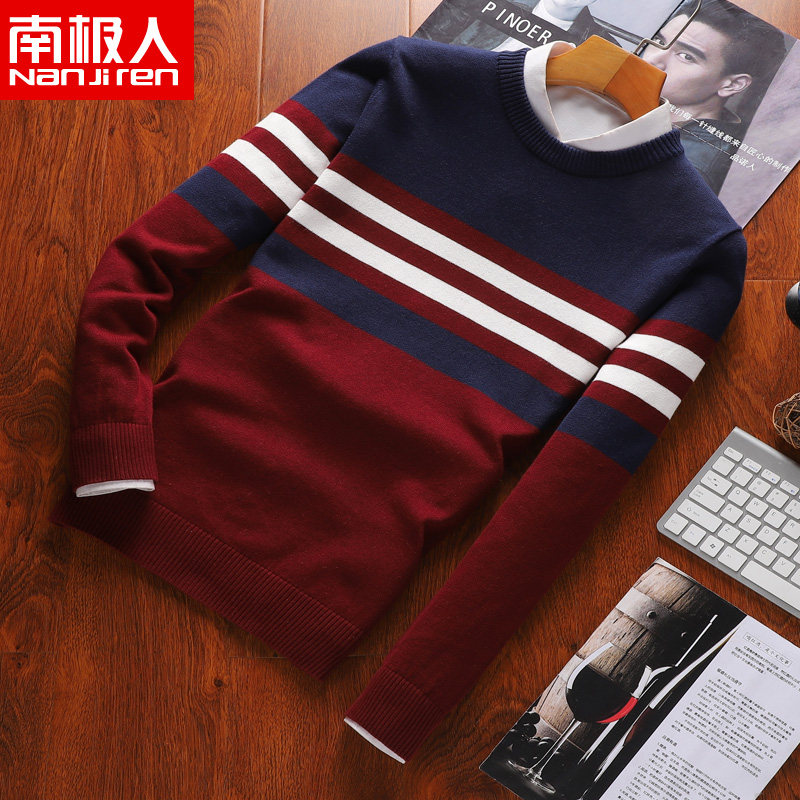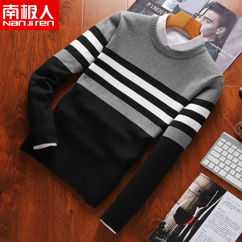Antarctic man autumn and winter men's sweater men's Korean version of the sweater Youth round neck velvet thickened trend base shirt