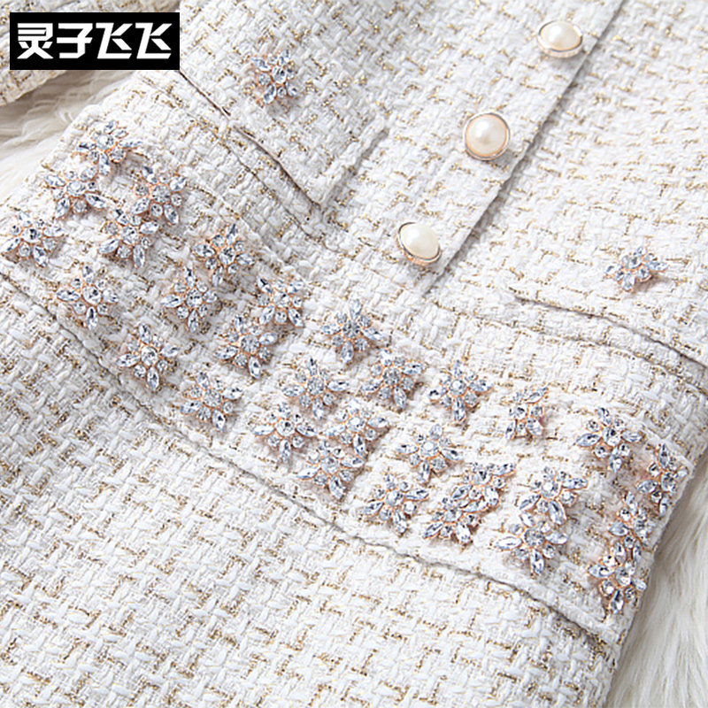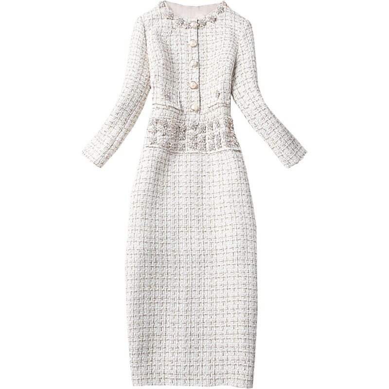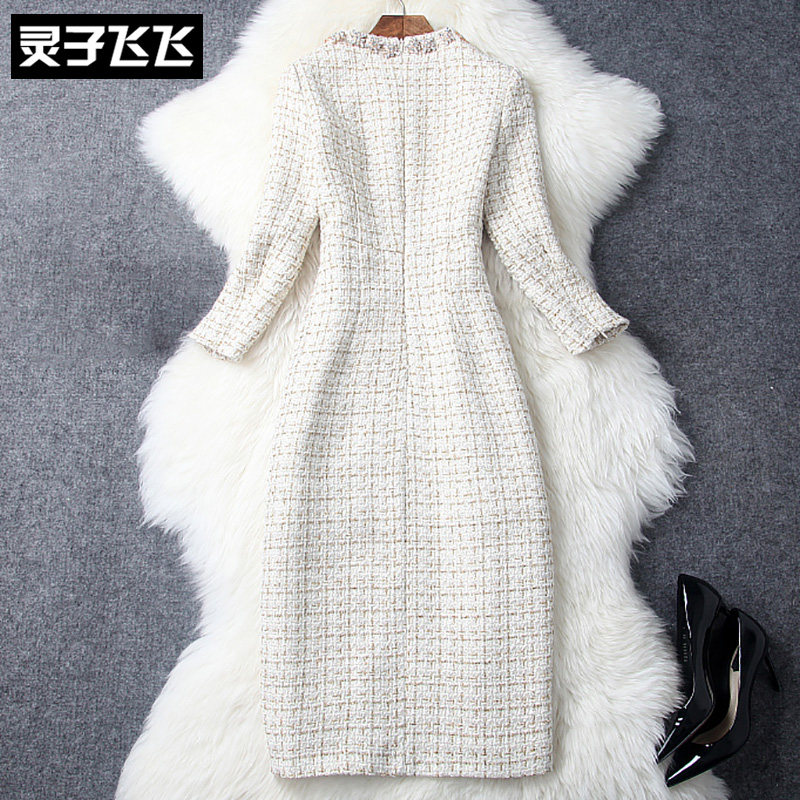 Autumn Winter temperament Name Yuanyuan Light Cooked in Long version Body Wrap Hip Nail Beads Inlaid Drilling bright sheet Coarse Flowers Zi Ocean Dress