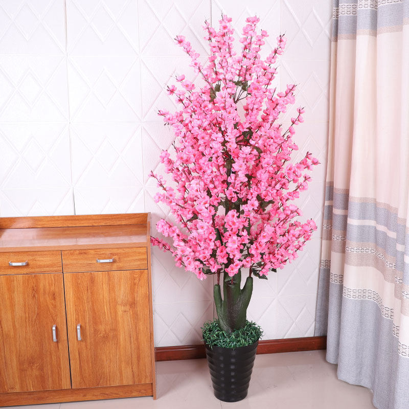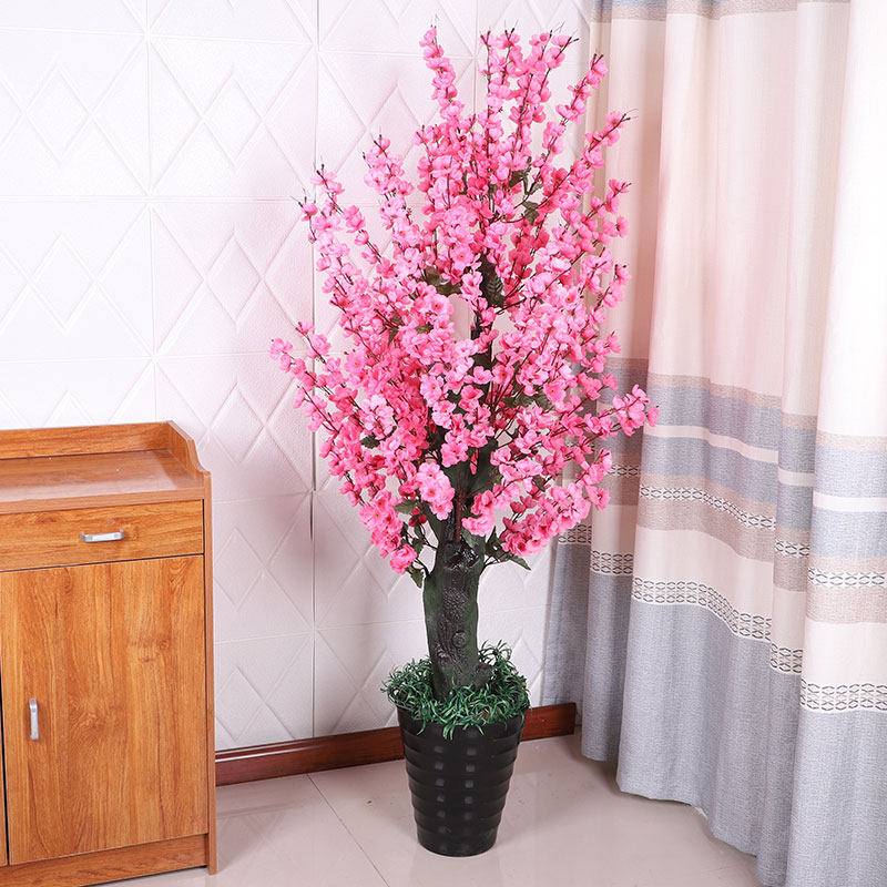 Fake Flower Emulation Flower Living Room Hotel Interior Decoration Floor Bonsai Potted Plant Pendulum Pieces Emulation Plant Fake Tree Peach Blossom Trees