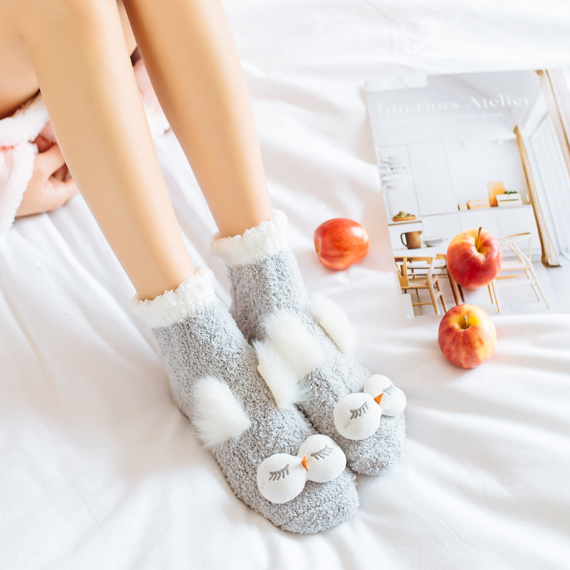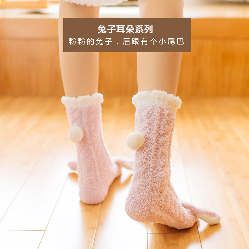 Coral fleece sleeping socks women's mid-tube socks winter warm thickening home socks silicone non-slip floor socks sleeping socks