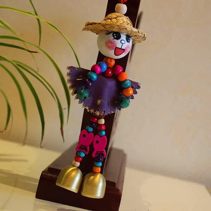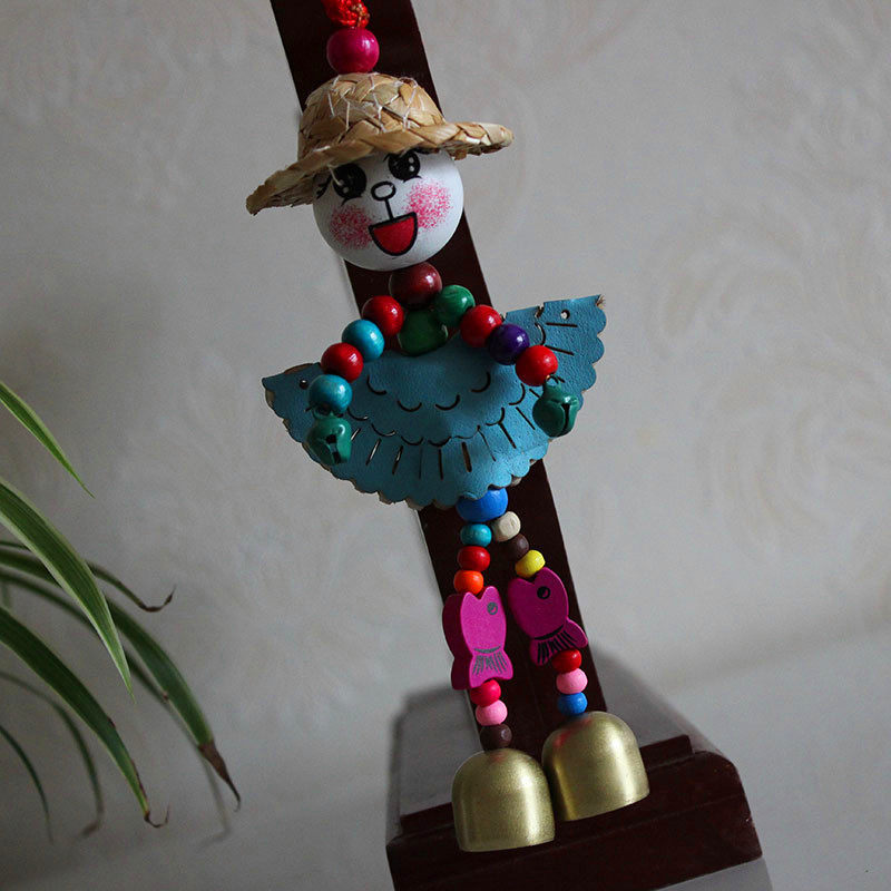 Wind chime decoration door decoration creative straw hat blessing doll pendant children girls room bell home decoration gift