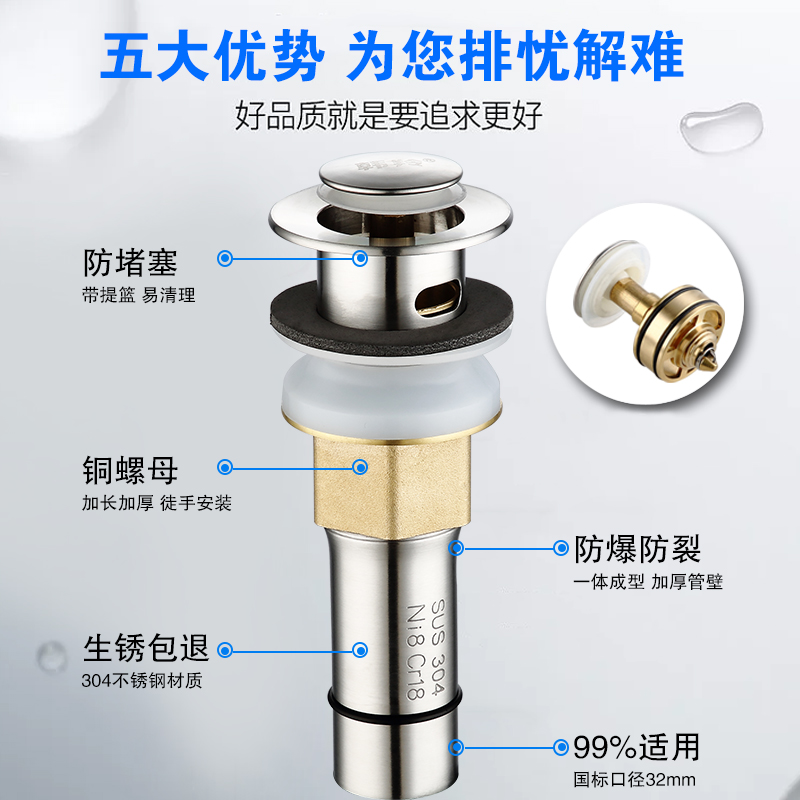 Bathroom cabinet 304 stainless steel sewer pipe dewater pipe wash hands - face pool anti - odor drainage hose jump accessories