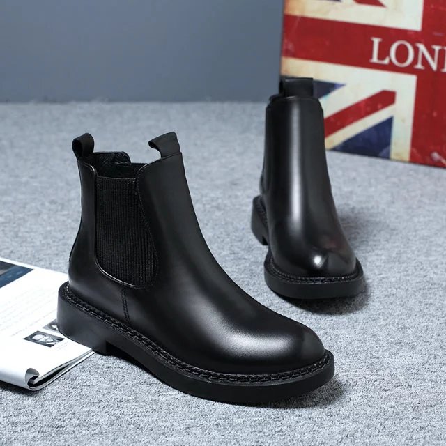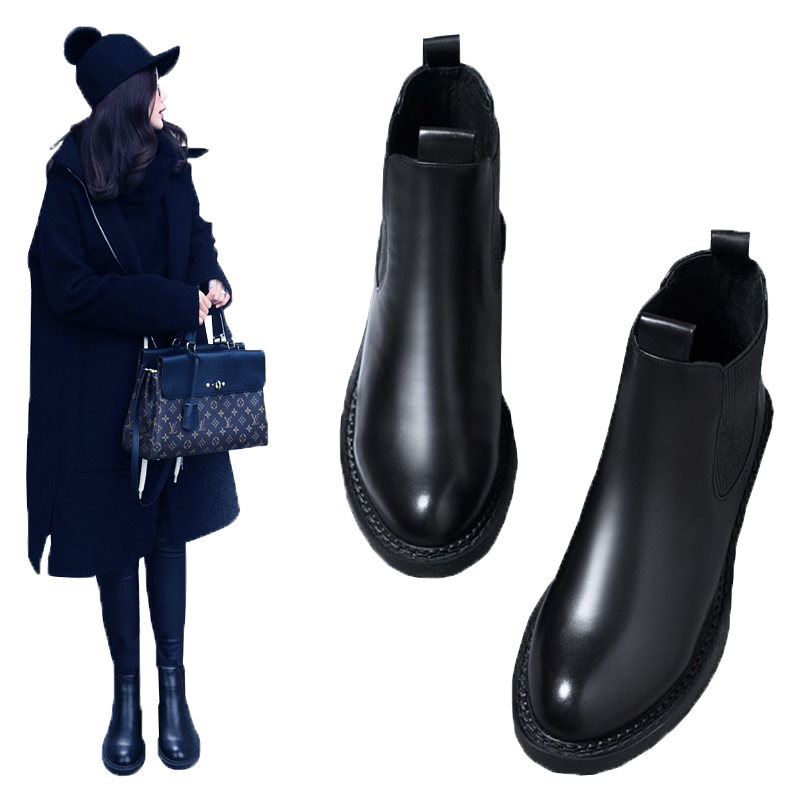Hong Kong 2020 autumn winter new women's shoes fashion genuine leather flat bottom Martin boots Inn wind thicken Chelsea short boots