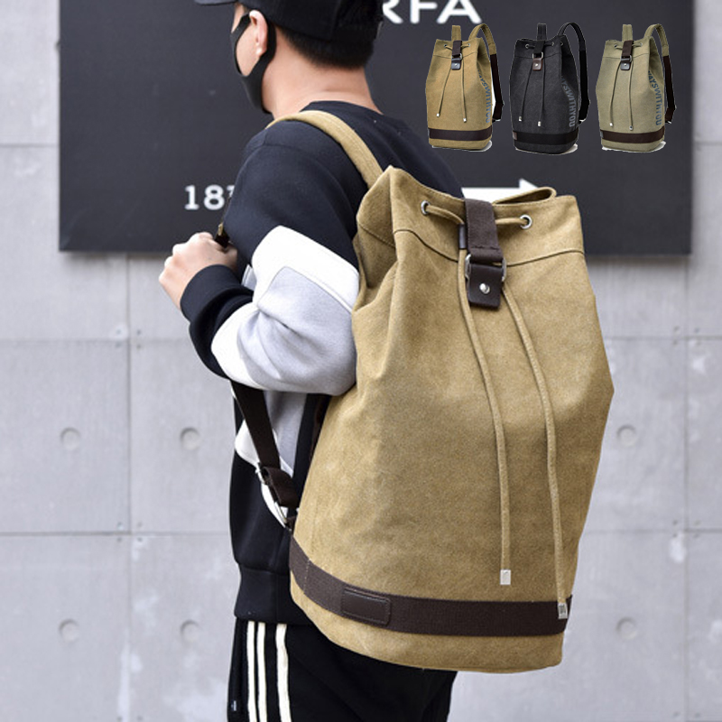 Men's double shoulder bag Men's large capacity Canvas Beam Pocket Draw Rope Travel Men's Bag Outdoor Big basketball Bucket Bag