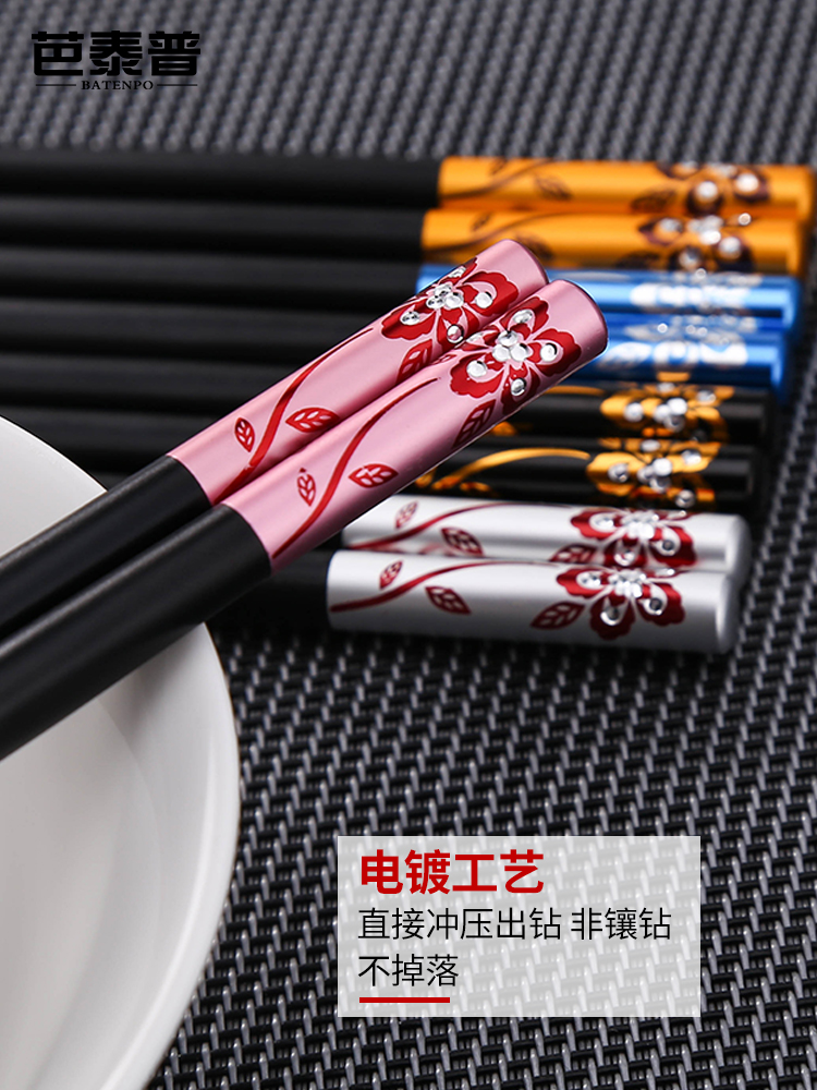 Alloy chopsticks household 10 pairs of family meal one person one chopstick set Japanese mildew-proof non-slip high-end tableware
