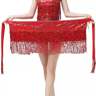 New belly dance waist sequin tassel hip scarf Indian dance waist scarf sago waist scarf sago waist closure