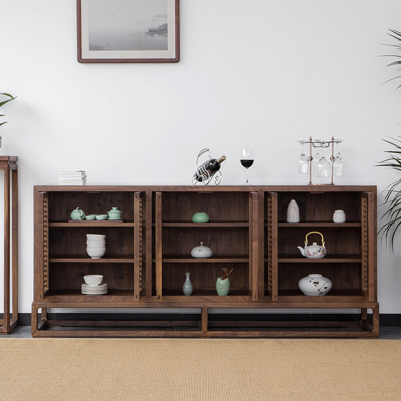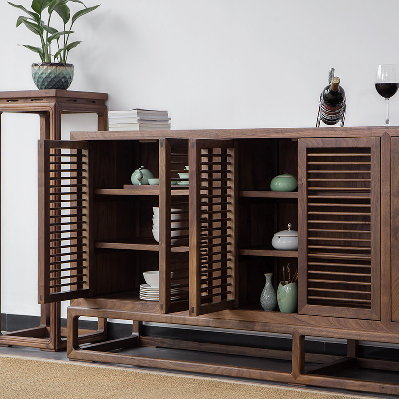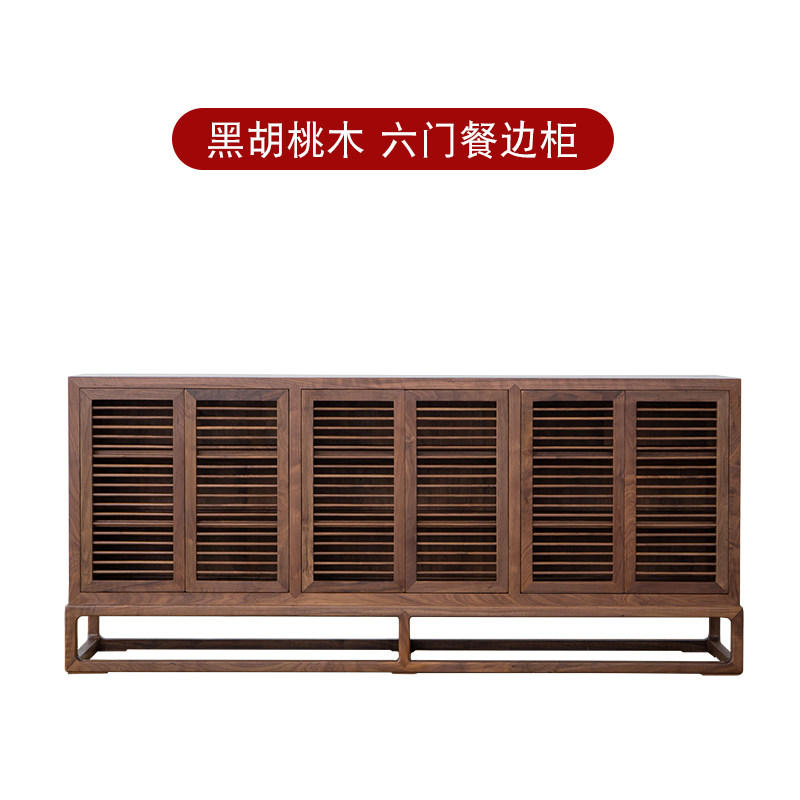 New Chinese Old Elm Wood Six Door Dining Cabinet Solid Wood Shoes Cabinet Black Walnuts Zen's Furniture Cabinet Tea Xuanguancabinet