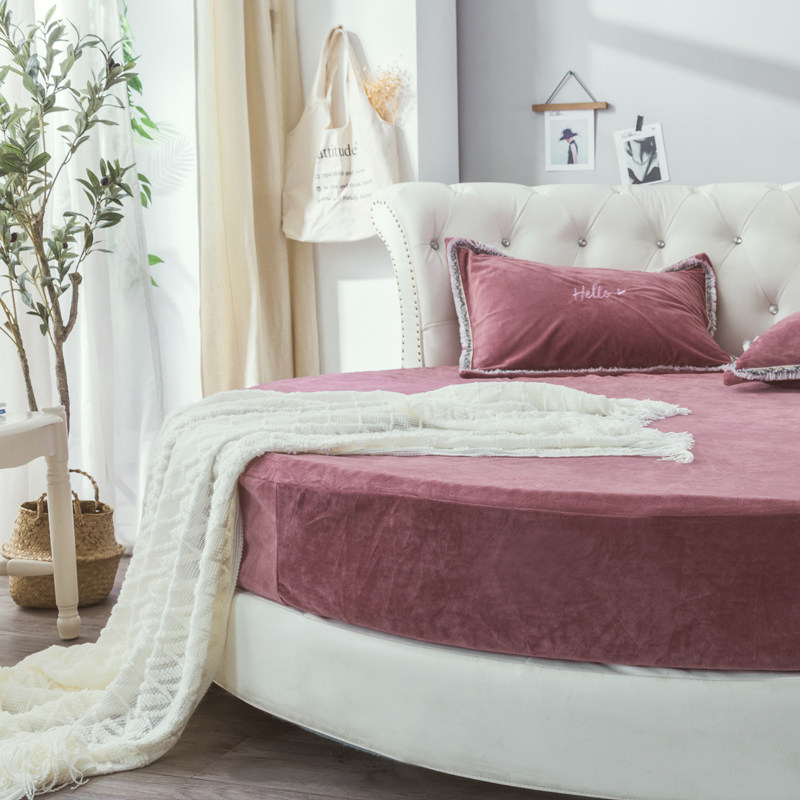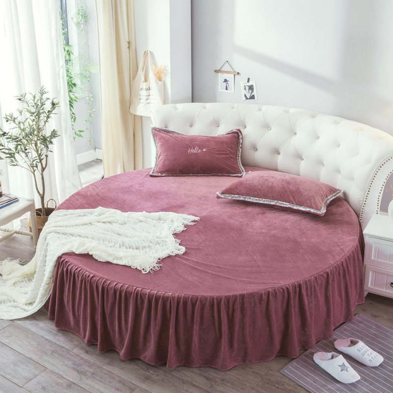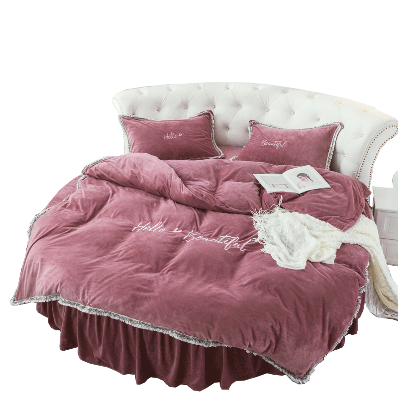 Winter warm plus velvet round bed four-piece round bed Hashar velvet double-sided coral velvet quilt cover Korean princess bed skirt