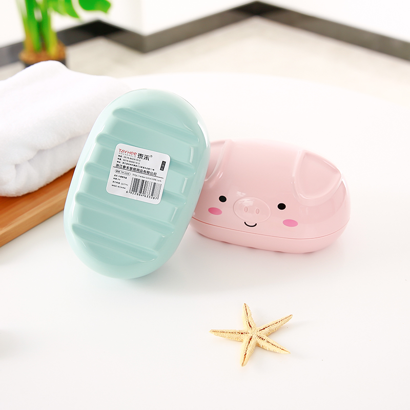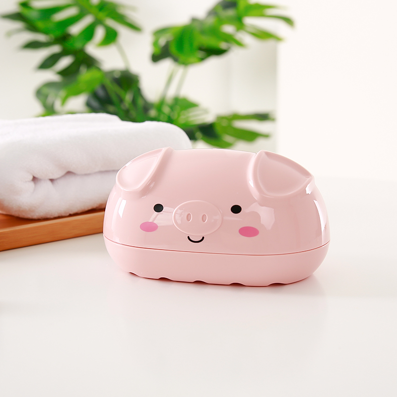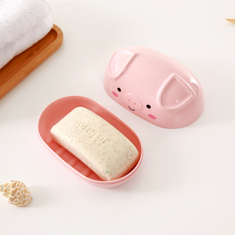 2 Cute Little Pig Soap Box Creative Makeup Room Cartoon Soap Case with lid Child travel without draining water