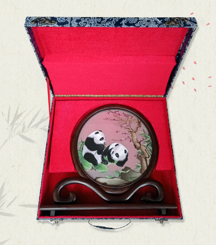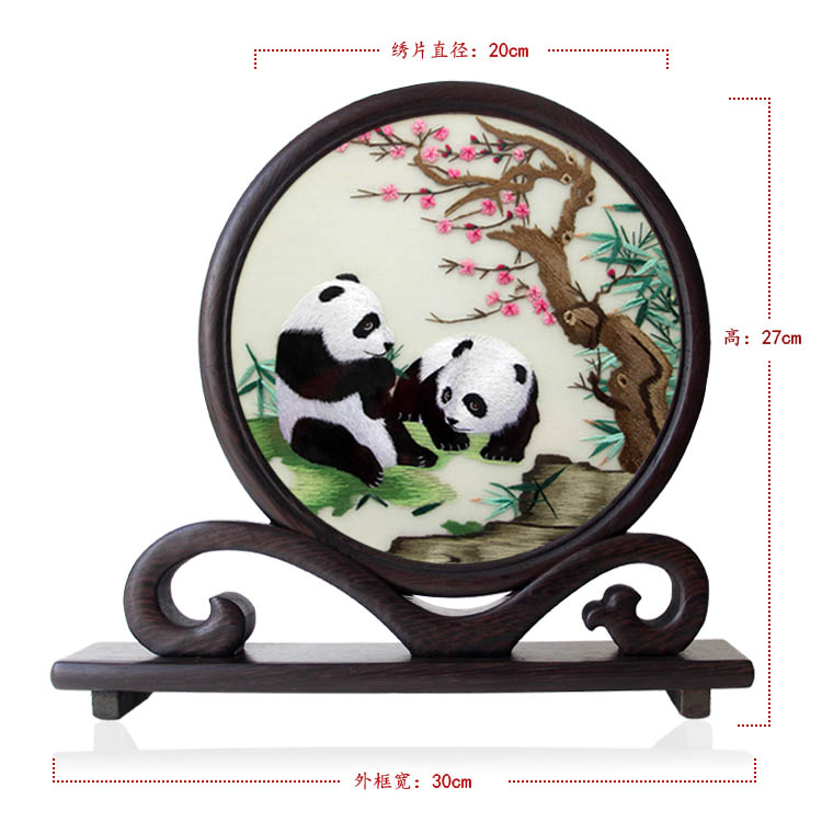Xiangembroidery Panda Boutique National Treasure Decoration Painting Ruyi Frame Bifacial Embroidered Pendulum Pieces Pure Handmade Embroidery Painting Gift