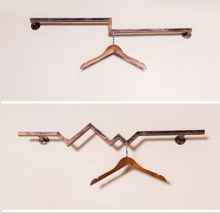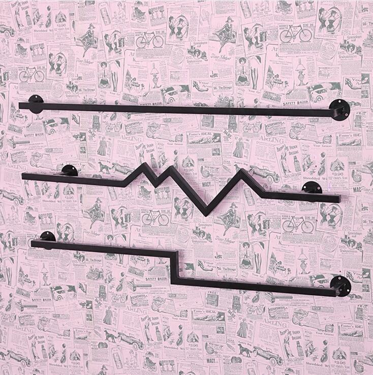 Clothing store display rack on the wall is hanging children's clothing shelf men's and women's clothing wrought iron wall-mounted hanger display side hanging is hanging
