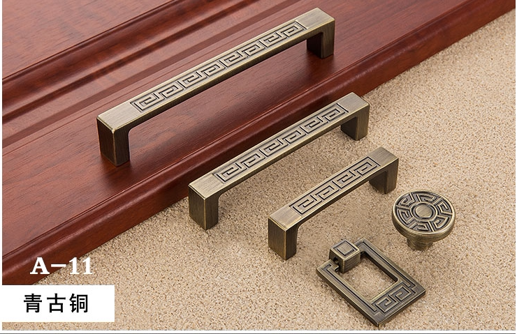 New Chinese Antique Handle Green Bronze Cabinet Door Drawer Handle Red Bronze Yellow Bronze Overall Cabinet Door Handle Hardware