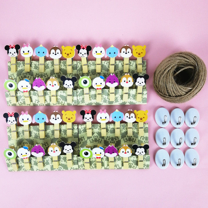 Creative Cartoon Hemp Rope Photos Small Wooden Clips Color Original Wood Color Hanging Photo Wall Wooden Photo Clip Trim-Taobao
