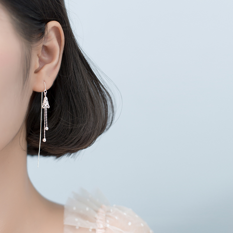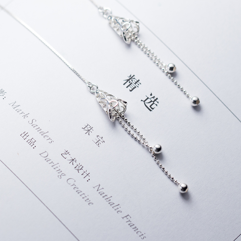 Love Loach S925 silver ear line female Korean version fashion hollowed-out bell ear necklace temperament sweet and long version ear ornament female