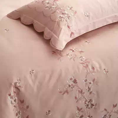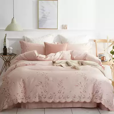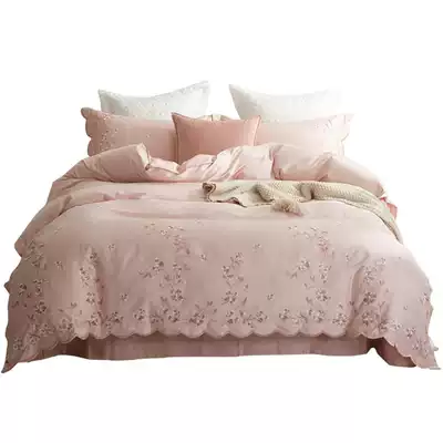 Four-piece cotton cotton 60 tribute satin embroidery wedding princess style pink girl heart sheets quilt cover bedding