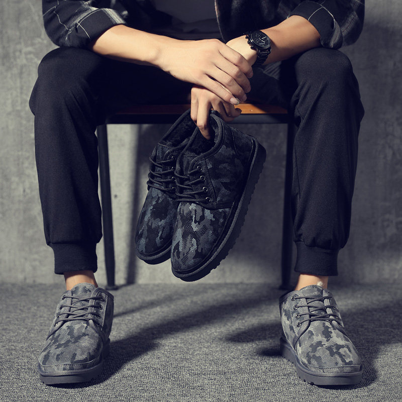 2022 new camouflage winter snow boots men's short boots plus velvet warm cotton shoes men's waterproof bread shoes