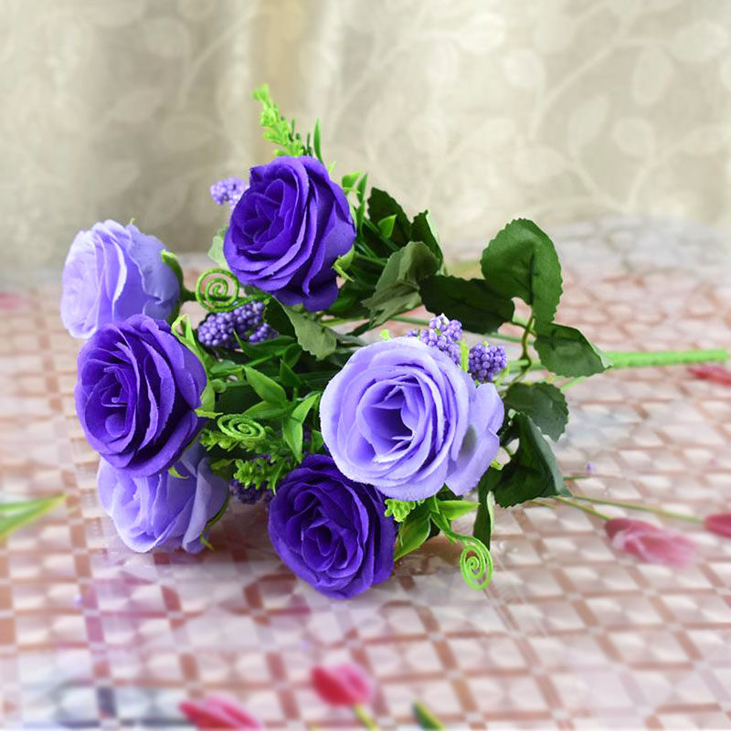 Single-branch fake flower simulation rose flower decoration floral flower flower arrangement plastic flowers small bouquet of flower bouquet games to perform props flower