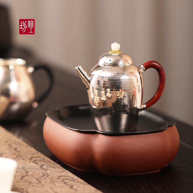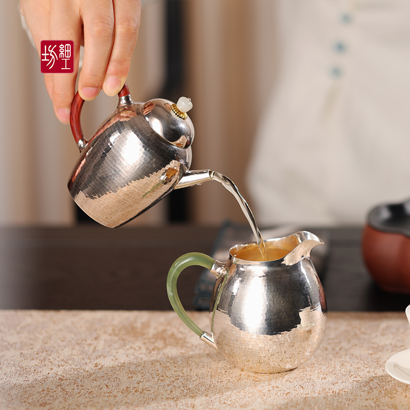 Silver teapot Japanese fine workshop Silver teapot Sterling silver 999 tea pot Handmade tea ceremony Household cooking teapot Small silver Teapot