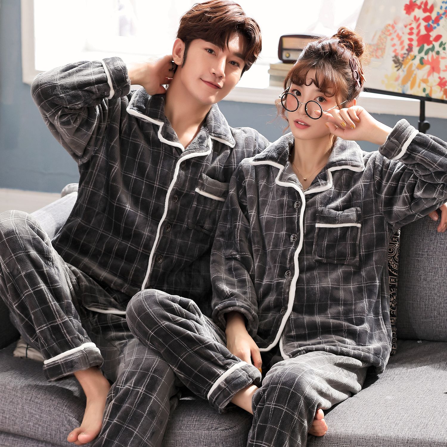 Winter thickened coral velvet couple pajamas autumn and winter men and women plus size fat MM200 catty loose flannel