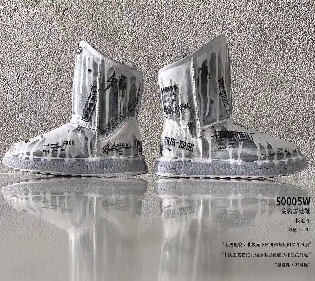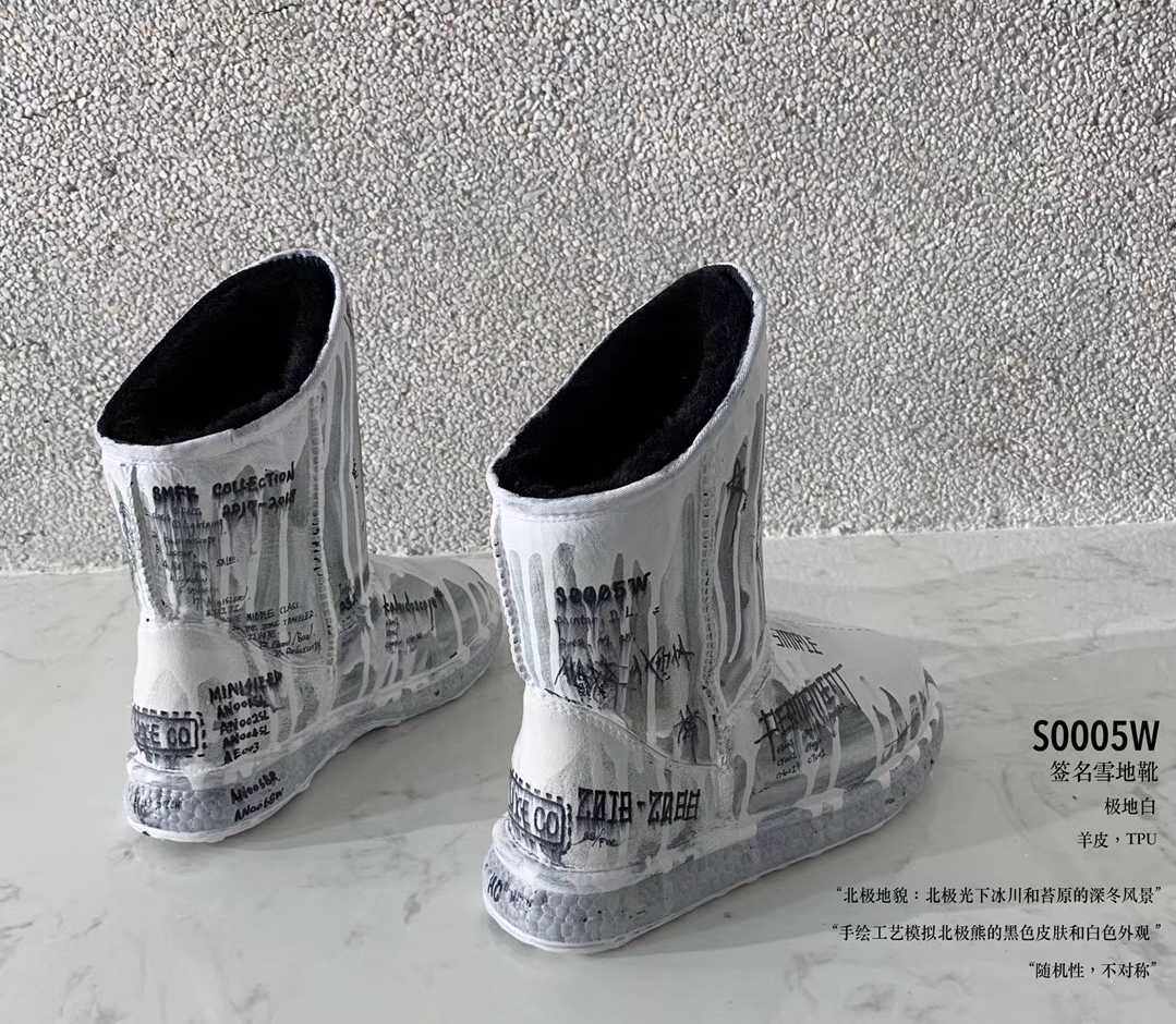 (Official Direct Mail) SMFK White Graffiti Handicraft Painting Signature Snowy Boots Sports Sole Boots