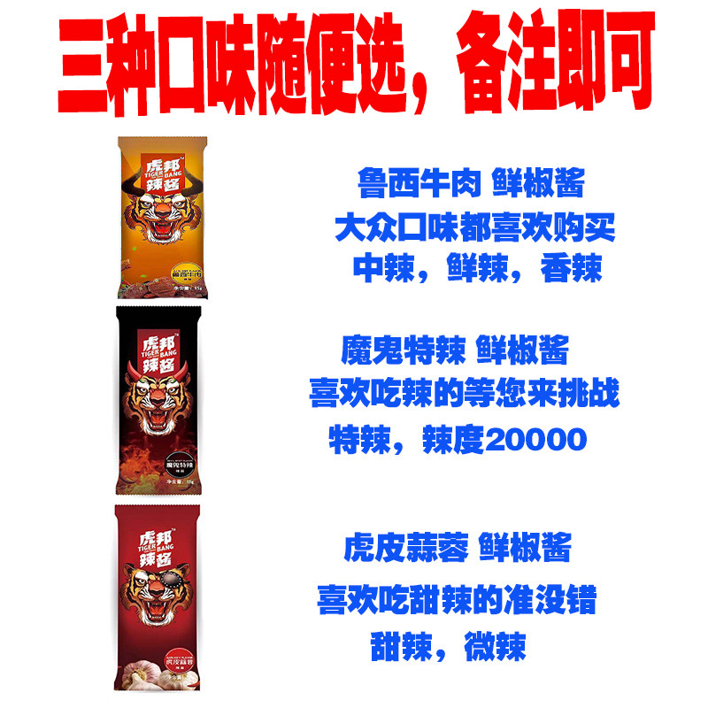 English Tide Tiger Bony Hot Sauce Rusey Beef 15g * 40 Bag Tiger Help Devil's Spicy Garlic Sauce small packaging net Red Hot sauce list
