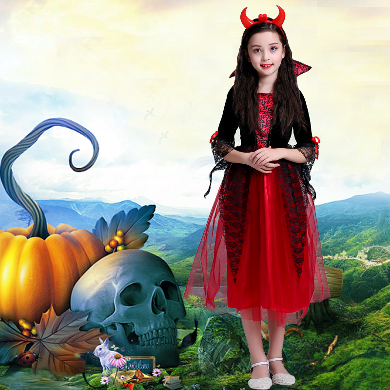 Children's Halloween witch act out of costume Ball cosplay witch horns play costume stage performance