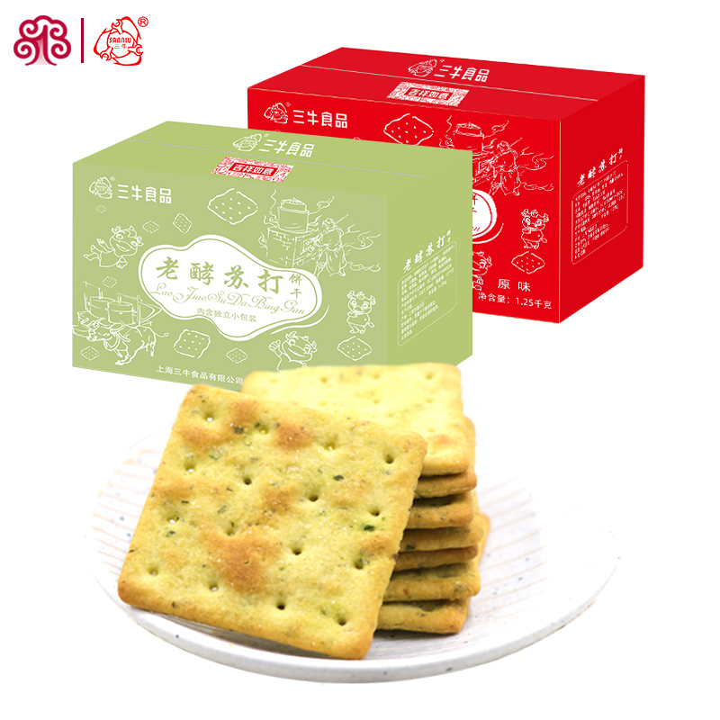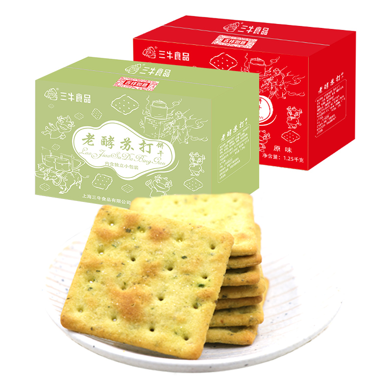 Shanghai Sanniu old yeast soda biscuits original shallot flavor whole box 1 25kg multi-flavored small packaged snacks