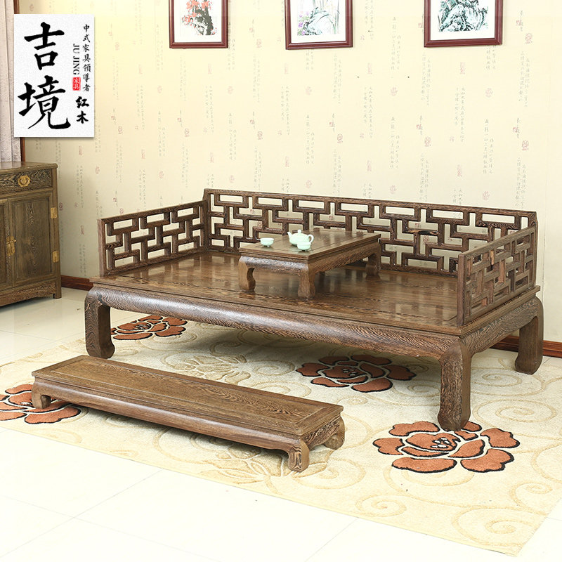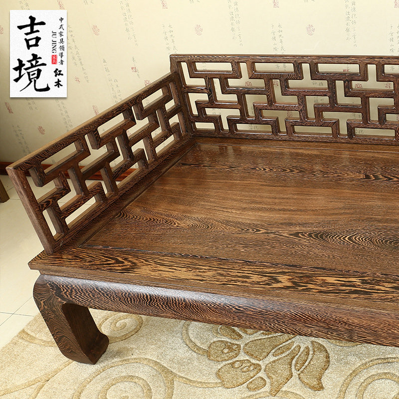 Mahogany solid wood Arhat bed chicken wing wood 4D Arhat bed three-piece new Chinese antique leisure beauty couch bed