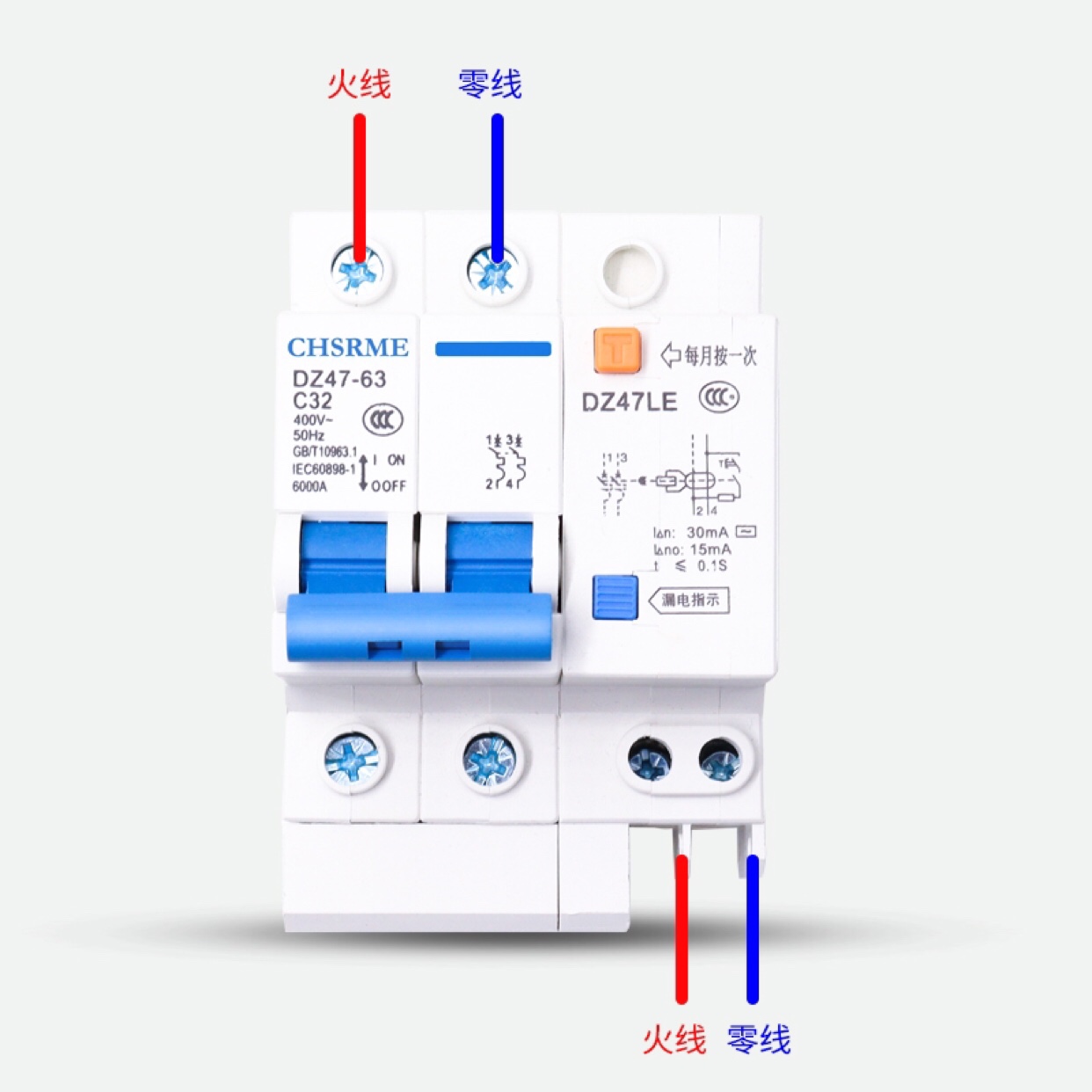 Leakage switch 2P63A DZ47LE bipolar 32A leakage protector Household air open circuit breaker