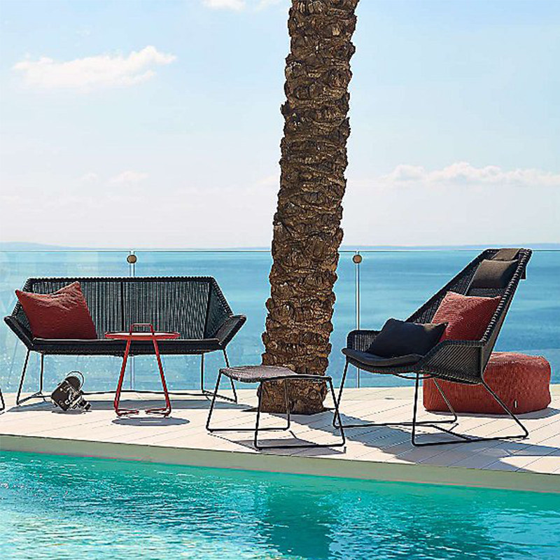 Rattan Chair Back Chair Single Coffee Table Combination Woven Rope Adult Black Foot Outdoor Leisure Table and Chair