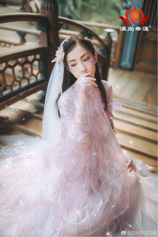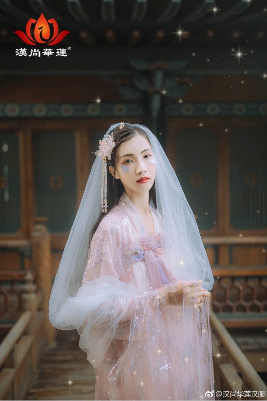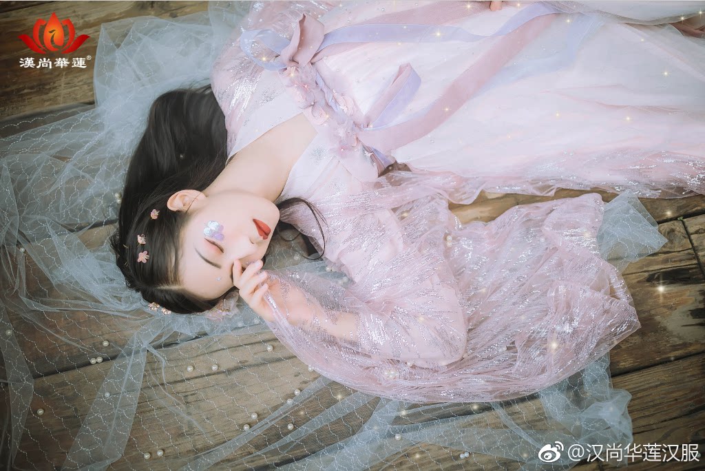 Hanfu Hire (Hanchanghua Lotus) Flowers Married shark with tears pink female Tang Wind Qi Chest Dress 1Y0203