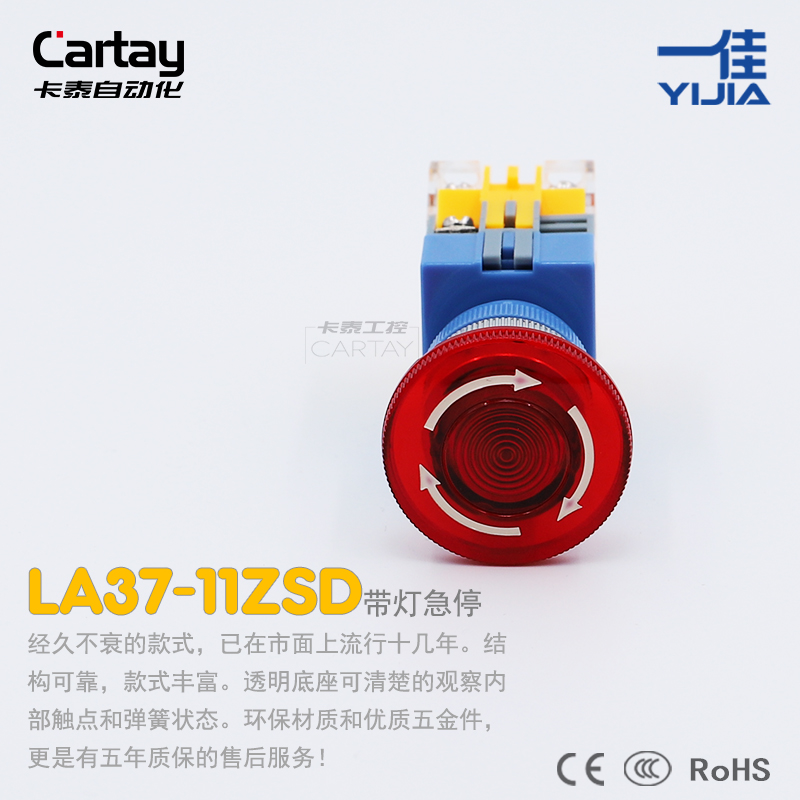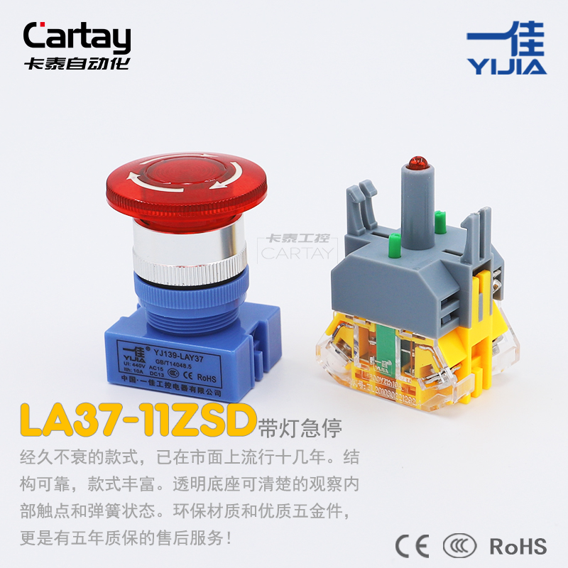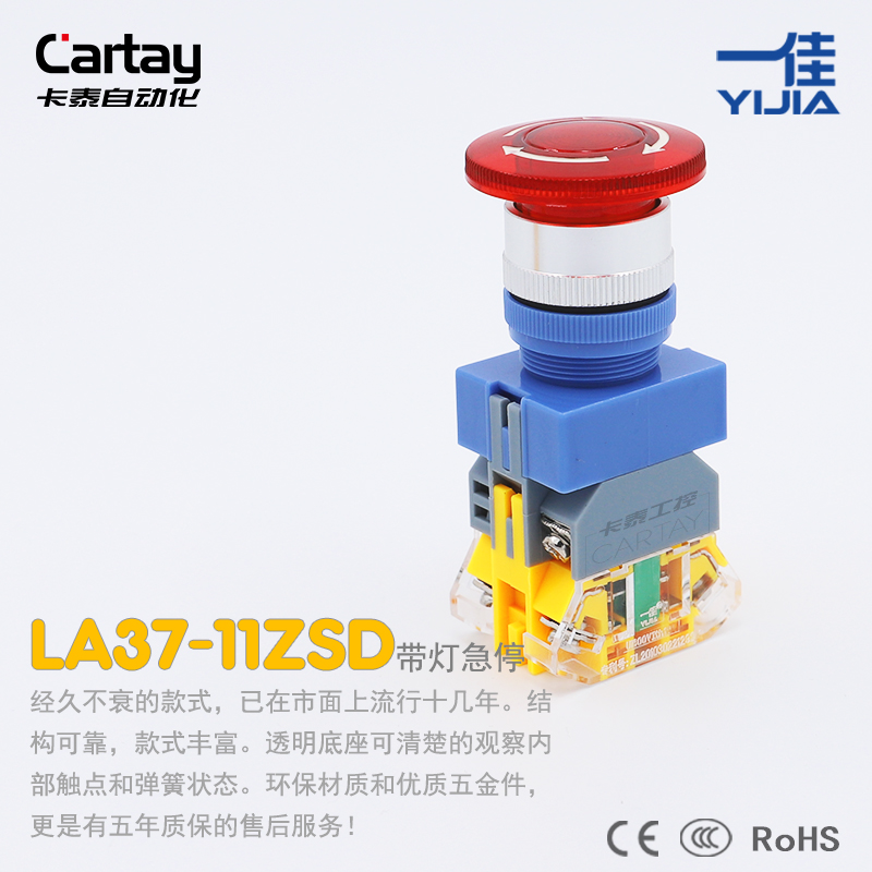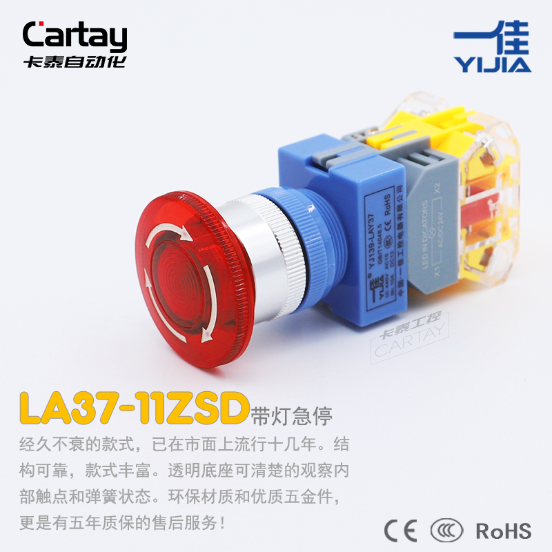Yijia emergency stop button with light LAY37-11ZSD close stop mushroom head self-locking LED light Y090 24v220v