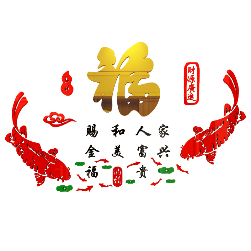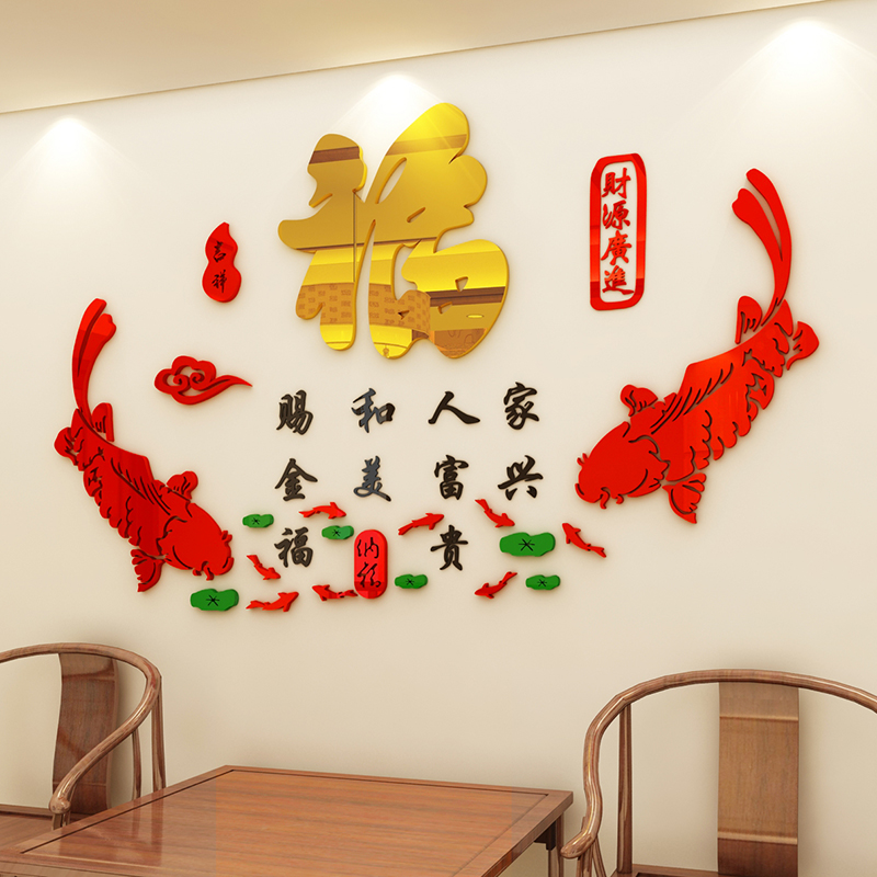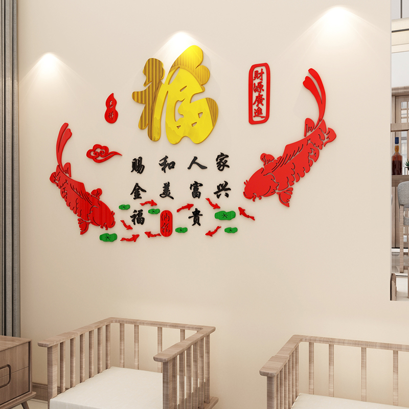 Forwordfish New Year Acrylic Wall Sticker 3d Solid Living Room TV Background Wall Stickers Chinese Dining Hall Wall Decoration