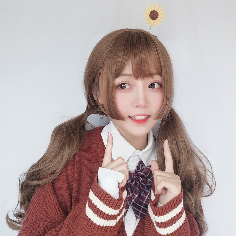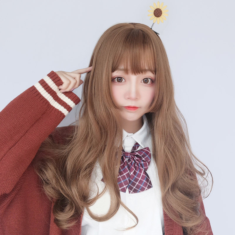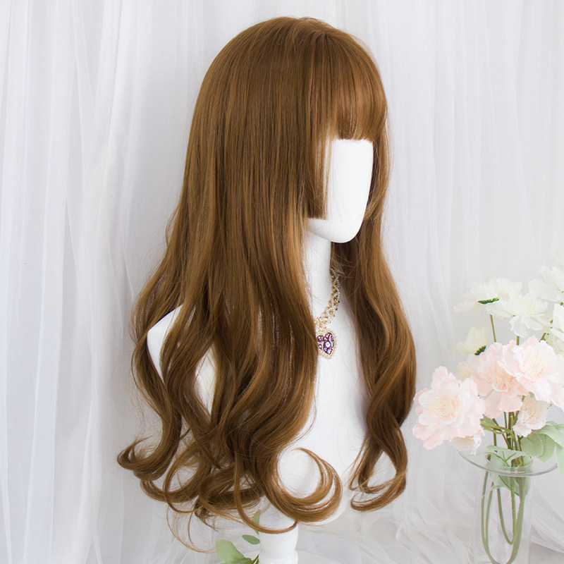 Princess Chai Milk Tea Brown Wig Woman Cos Daily Natural Ji Hair Large Wave Long Curly Hair Shibucha Spicy Girl's full headgear