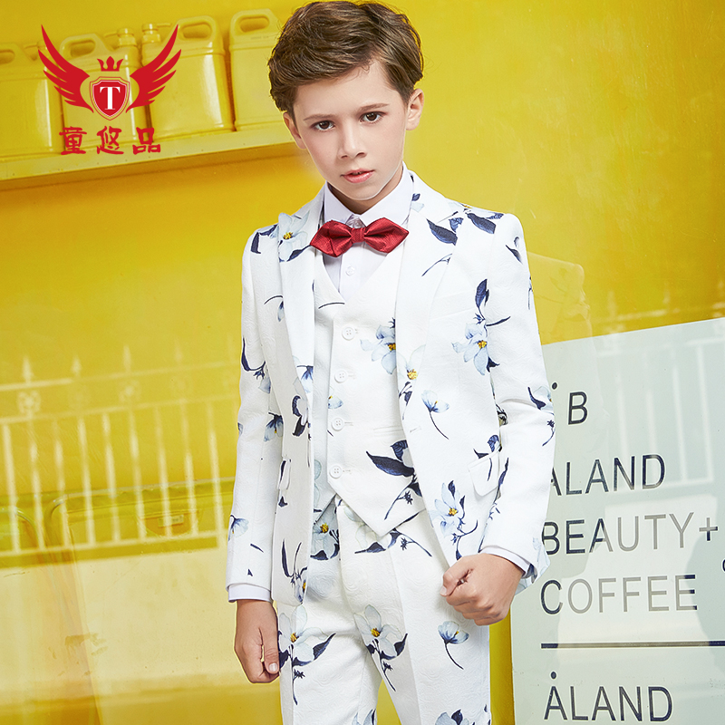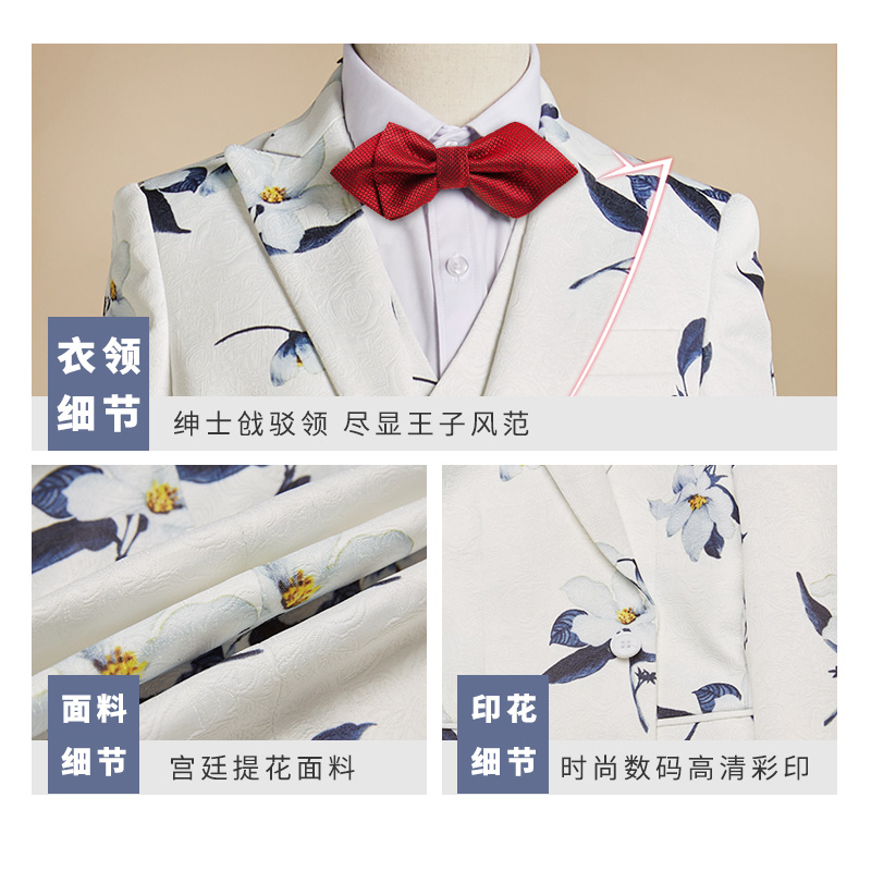 White printed five-piece set = jacket pants waistcoat shirt bow tie white printed five-piece set = jacket pants waistcoat plus velvet shirt bow tie white printed five-piece set = jacket pants
