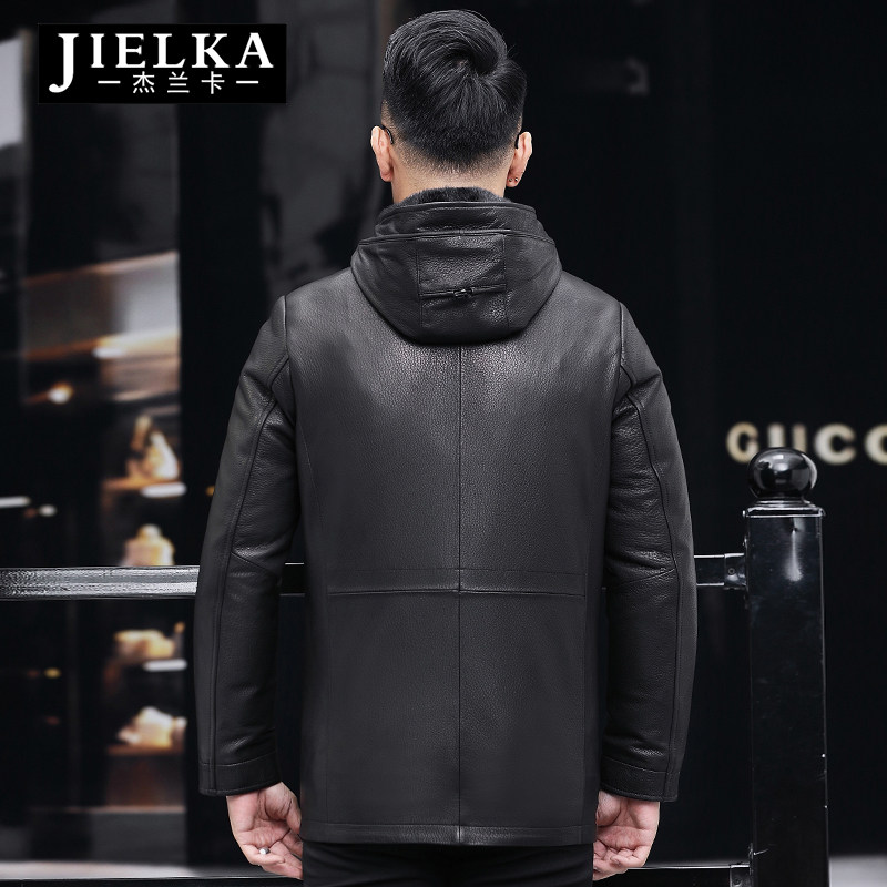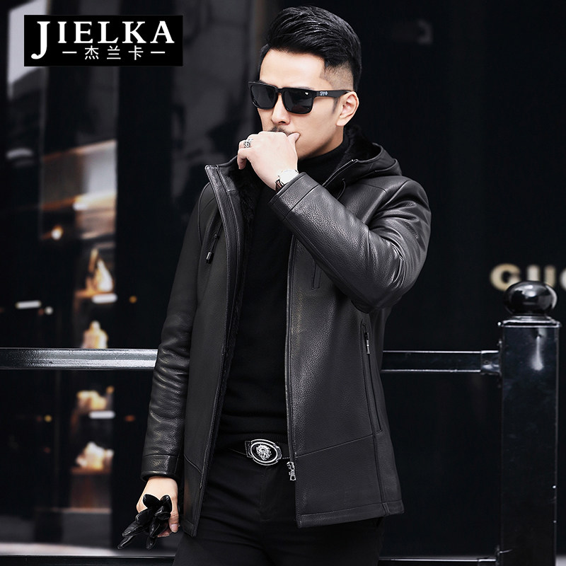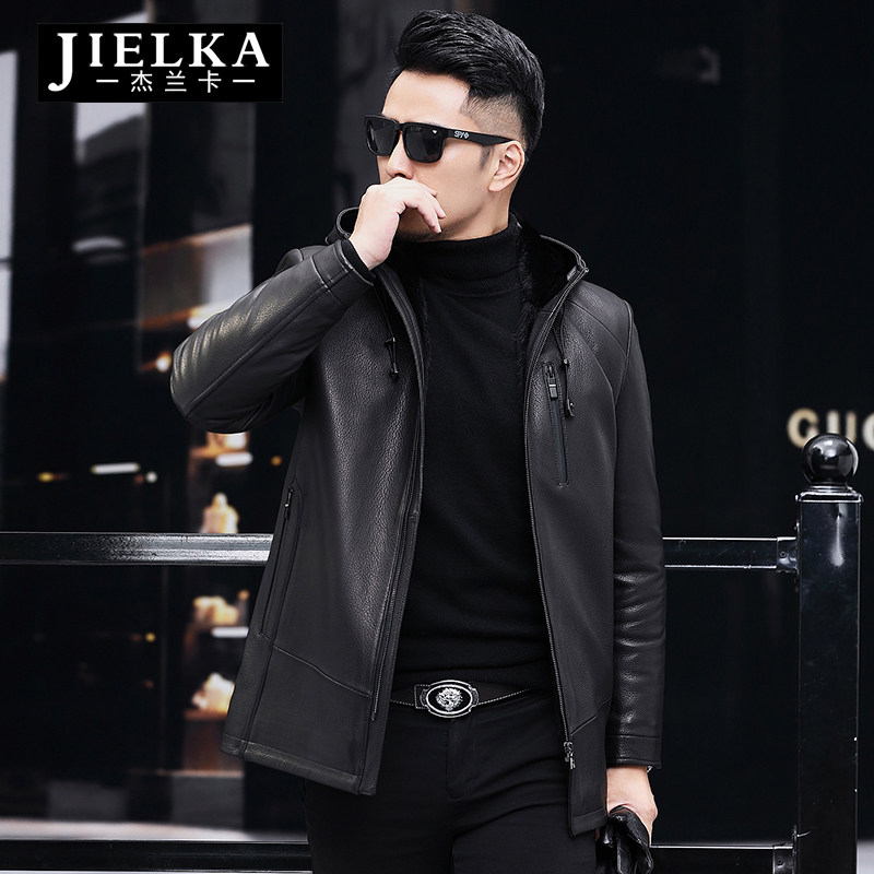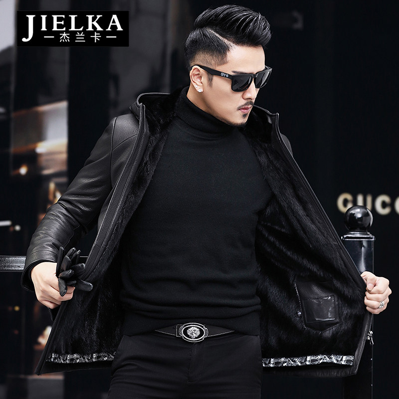 Mink coat Men's coat Whole mink hooded mink liner Leather jacket Haining Deerskin grain leather leather jacket