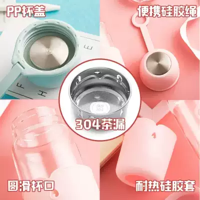 Kailin single-layer glass water cup female cute belt lift model public room household tea cup filter Red Girl Cup